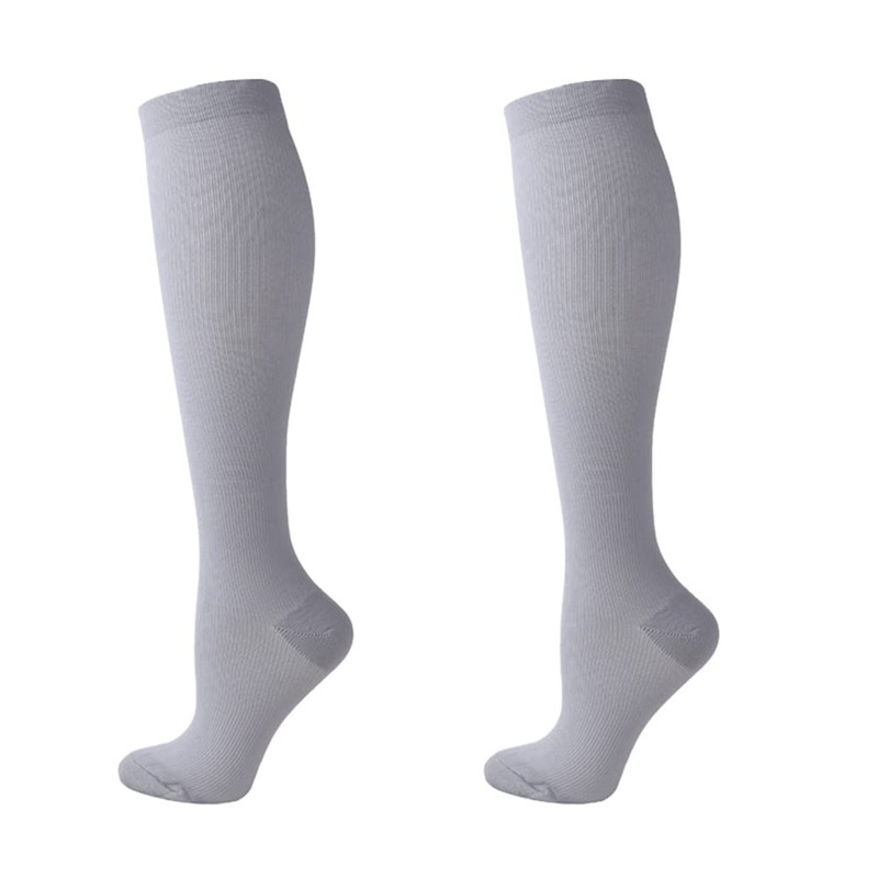 (2 Pairs)Compression Socks for Men and Women Flight Socks Compression Stockings Running Socks for Running,Shin Splints,Flight Travel-Boost Stamina, Circulation and Recovery (L-XL,Light Gray)