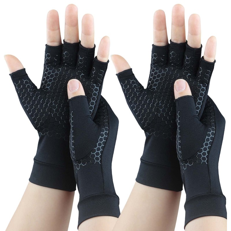 2 Pairs Copper Arthritis Gloves for Carpal Tunnel Pain Relief, Compression Gloves to Alleviate Hand Pain, Swelling, Fingerless Computer Typing Gloves for Rheumatoid, Tendonitis Women & Men (Small)