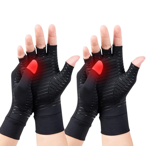 2 Pares Guantes de Artritis para Unisex, Guantes de compresión de medio dedo, Alivia Dolor Reumatoide y Rigidez de Muñeca, Antideslizante, Transpirable,Ideal para Trabajo y Cuidado Diario (negro, L)