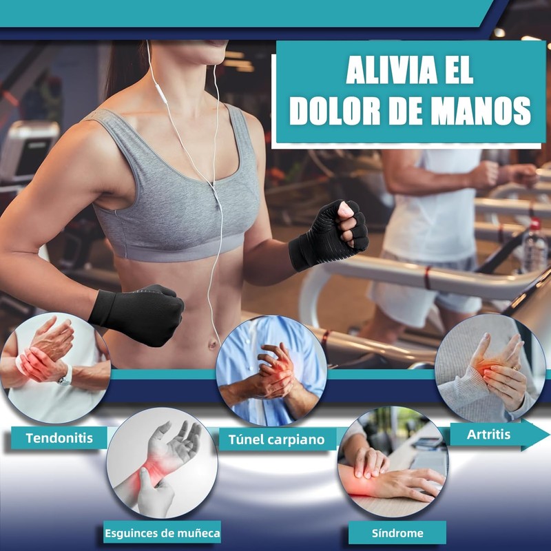 Estos guantes de compresión con infusión de cobre ofrecen un soporte suave pero firme para manos y muñecas, ideales tanto para el alivio diario de molestias como para actividades específicas. Su diseño semiabierto en los dedos brinda libertad para tareas detalladas (tejer, escribir, usar dispositivos) sin sacrificar la compresión terapéutica.
