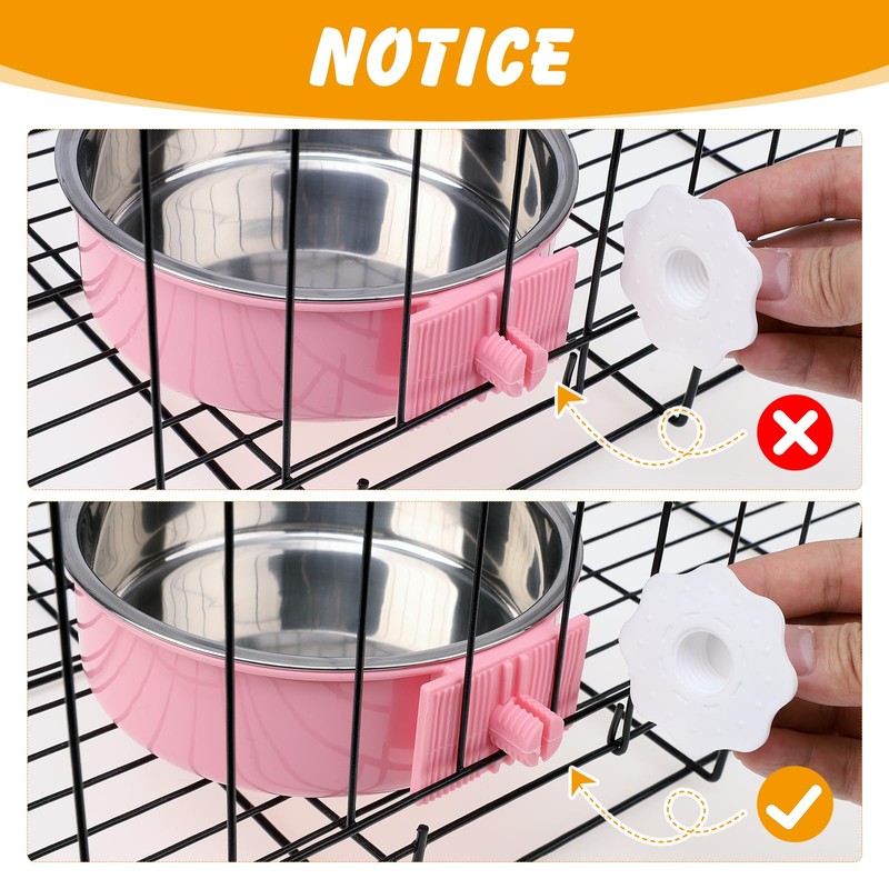 - Design: The cross lock design can be easily fixed to the dog's crate, and is easy to install in the crate and cage, also easy to assemble when not in use.The puppy crate water bowl is 2-in-1 design, a plastic bowl and a built-in detachable stainless steel bowl, which provides great convenience when used.