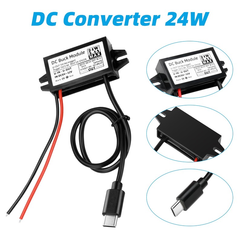 2-Pcs 24W DC 12V/24V to 5V USB C Step Down Converter,Aideepen 3A 24W Type-C Output Charging Module Waterproof Buck Module Power Adapter
