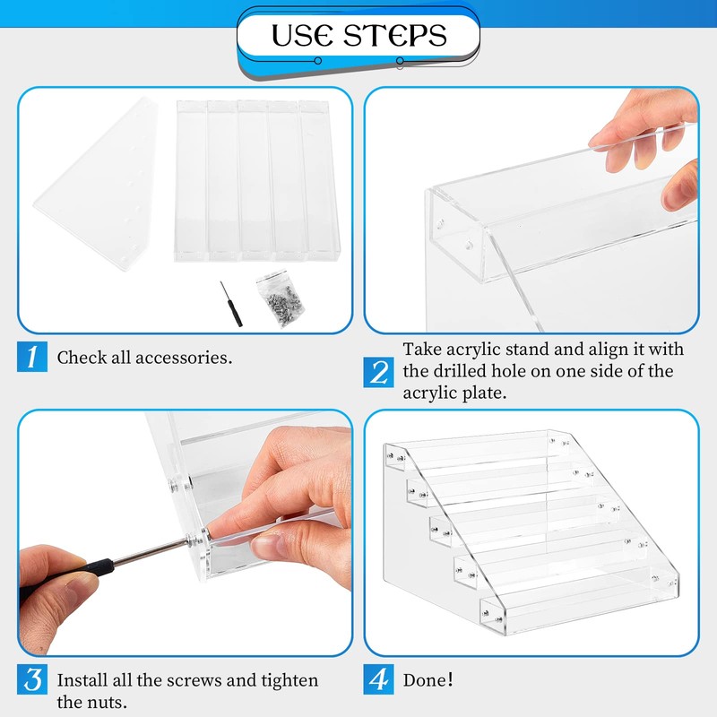 - Easy to Install: the acrylic tiered spice rack is easy for you to use, simply peel off the protective film of the acrylic plate before installation, and use our screwdriver and screws to install it, ideal for kitchen, bedroom, bathroom, office, school, shop and other places