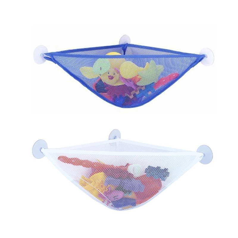 2 PCS Bath Toy Organizer Mesh Storage Bag,Creative triangular bathtub mesh bag, Store toy sharp tools and easily hook them up