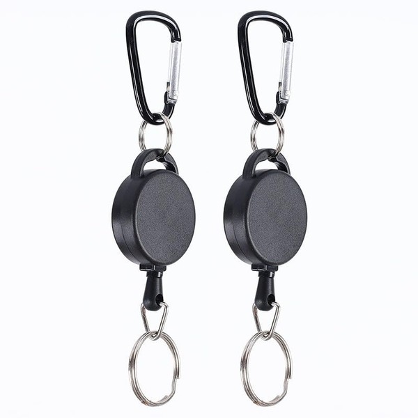 2 Pcs Black Retractable Keychain Heavy Duty Key Fob Badge Reel Holder with Multitool Carabiner Clip and Key Ring for Id Holders and Lanyards, Badge Holders, Car Keychain