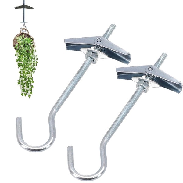 2 PCS Ceilings Hooks,Hang Plants Plasterboard Ceiling Hook,Hang Plants Wing Spring Toggle Hook, Plasterboard Wall Mounted Ceiling Hanger Heavy Duty Swag Hooks,for Cavity Walls Fixing Lights Flowerpots