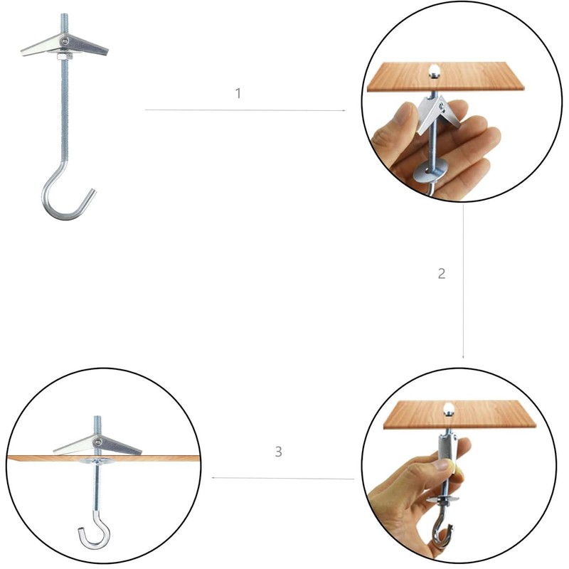 Installation is quick and simple, thanks to the wing spring toggle system that expands behind the wall or ceiling panel to hold the hook securely in place. The included accessories make setup easy for both experienced DIYers and first-time users, helping you save time and effort while achieving a professional finish.