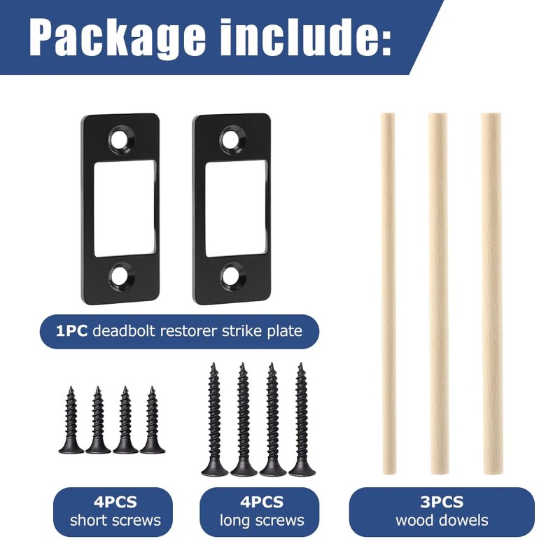 【DOOR ACCESSORIES】 You will get 2pcs deadbolt restorer strike plate.This deadbolt restorer strike plate is designed to fix the common problems of dead bolts, such as misalignment, sticking, and the problem of electronic/smart locks running out of battery.