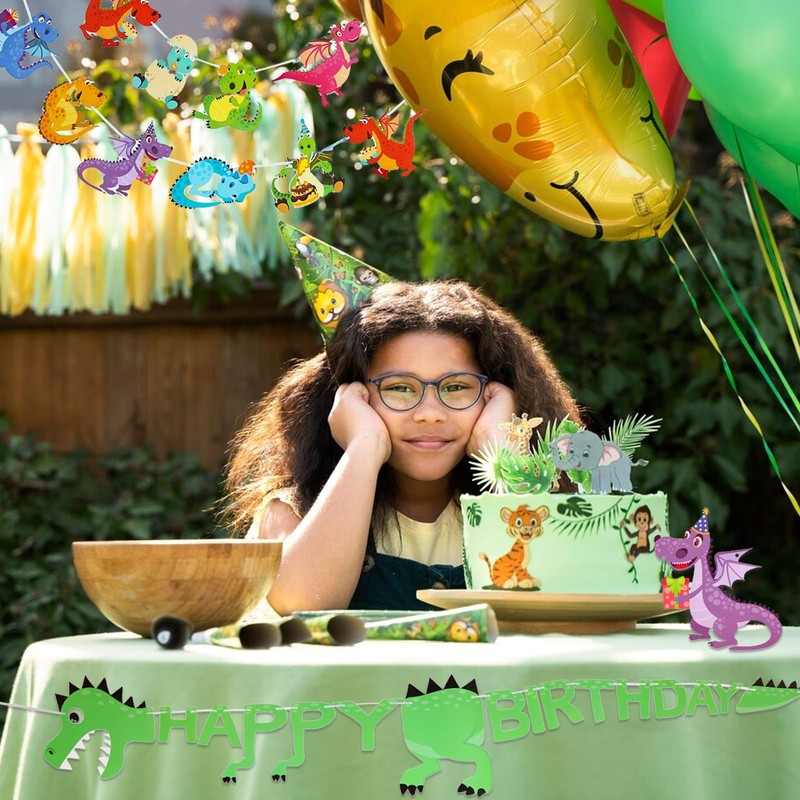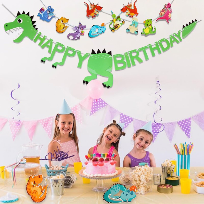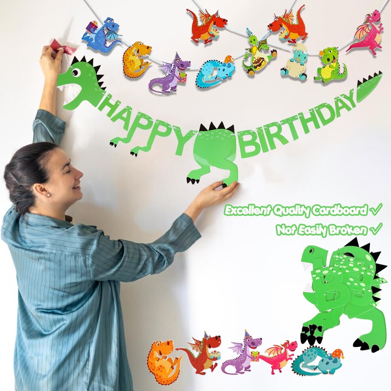 - Dinosaur Theme: To make the birthday banner special; the happy birthday banner design with colorful letters and dinosaur themed illustrations; fun and vibrate dinosaur party favors for all kids birthday