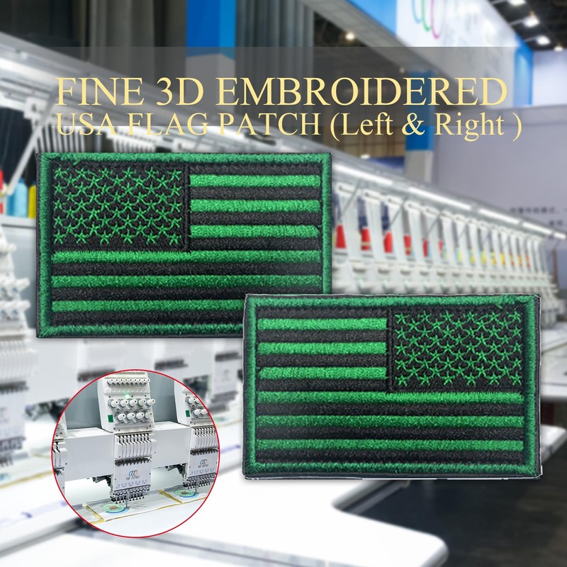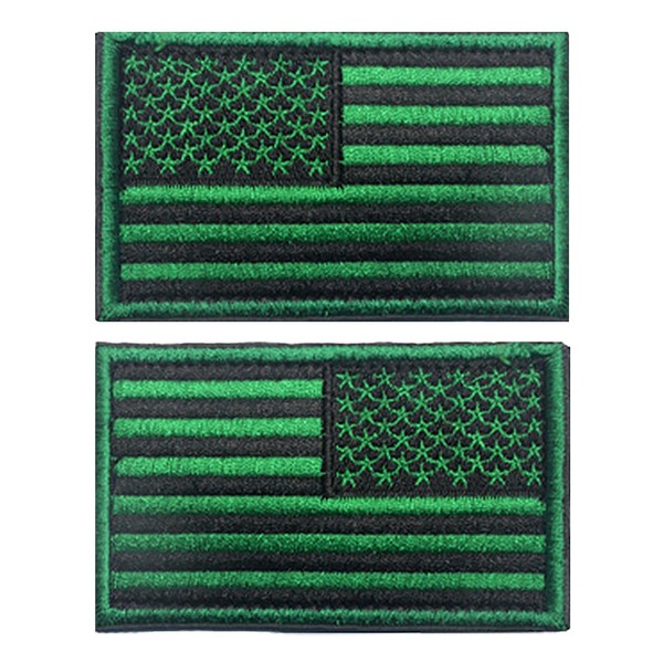 2 PCS EmWoot USA American Flag Patch Regular Reverse Embroidered Tactical Morale Patch Hook and Loop Applique Fastener(Bright Green)