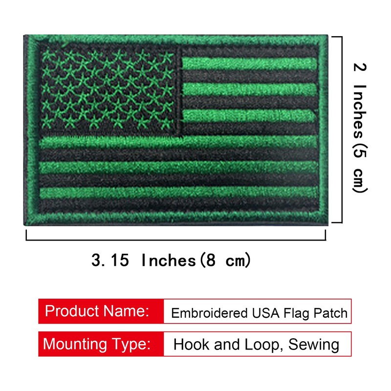 - 2 PCS America Flag Patches,Embroidered,Regular Reverse,Size:3×2 inches (8×5 cm),Hook and Loop,Comes with a Loop Tape of the same size;