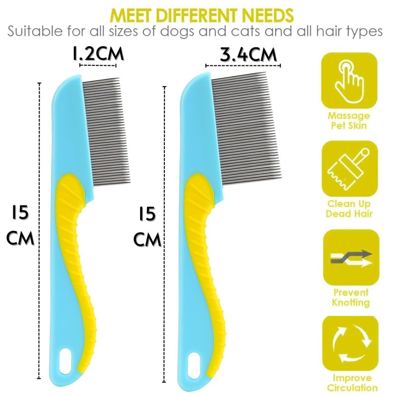 2 Pcs Lice Comb,1.8cm Short Teeth And 3.4cm Long Teeth Lice/Flea/Dandruff Comb,Comprehensive Removal Of Lice,Suitable For Cat/Dog Flea And Tick Treatment Long Fine Thick Hair