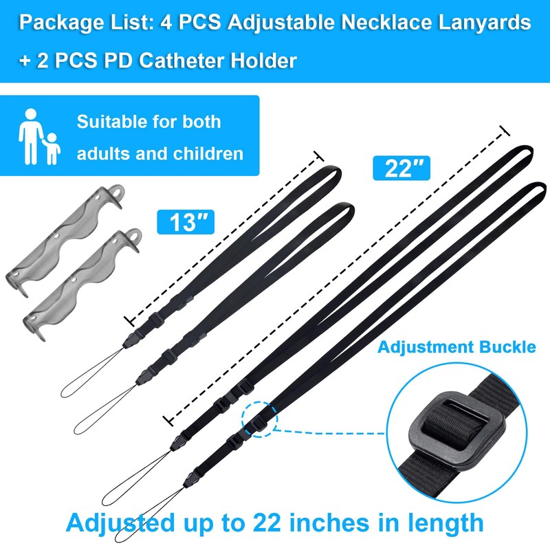 - 【Easily Adjustable Length】 Our PD dialysis accessories lanyards is skin-friendly, quick-drying, adjustable and comfortable. The PD catheter lanyard baxter can be adjusted up to 22 inches in length to meet the needs of different individuals. The PD lanyard for peritoneal dialys is comfortably fits around the neck and secures the end of the catheter to prevent it from pulling.