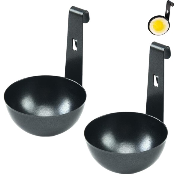 2 PCS Poached Egg Pan, Egg Poacher, Egg Poacher Pan, Round Egg Cooker Stainless Steel Egg Rings Cooker With Anti-Scald Handle, Perfect Boiled Eggs for Kitchen Tool (Black)