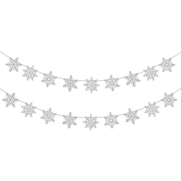 2 Pcs Silver Glitter Snowflake Banner, Snowflake Winter Party Decorations, Snowflake Garland Christmas Party Decorations (Silver)