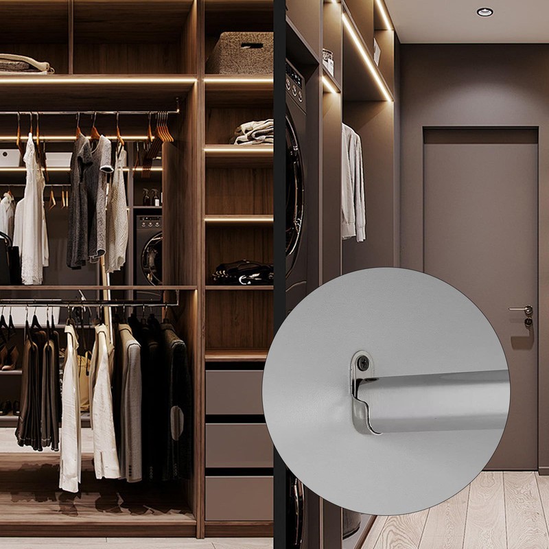 Ob im Schlafzimmer, in begehbaren Kleiderschränken oder in Garderoben – diese robusten Kleiderstangenhalterungen bieten eine zuverlässige Unterstützung für jede Umgebung. Sie eignen sich für den privaten sowie gewerblichen Gebrauch und tragen zu einer ordentlichen, strukturierten Aufbewahrung Ihrer Kleidung bei. Ein funktionales, langlebiges Zubehör für alle, die Wert auf Stabilität und Qualität legen.