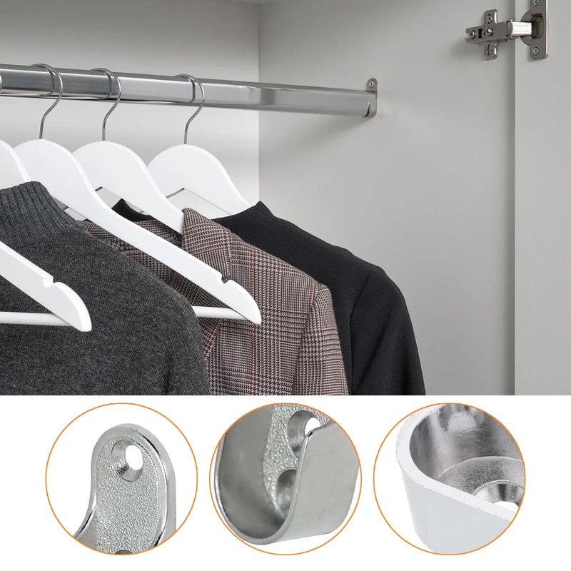 - Durch ihre universelle Passform eignen sich die Halterungen für eine Vielzahl von Möbeltypen und Kleiderstangen mit Standardmaßen. Sie sind nicht nur für Neubauten oder Möbelmontage geeignet, sondern auch ideal zum Austausch alter oder beschädigter Halterungen.