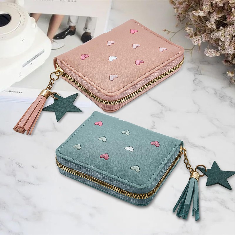 ⭐Each wallet features multiple card slots, a zipper coin compartment, and a charming star pendant, making it both versatile and stylish.