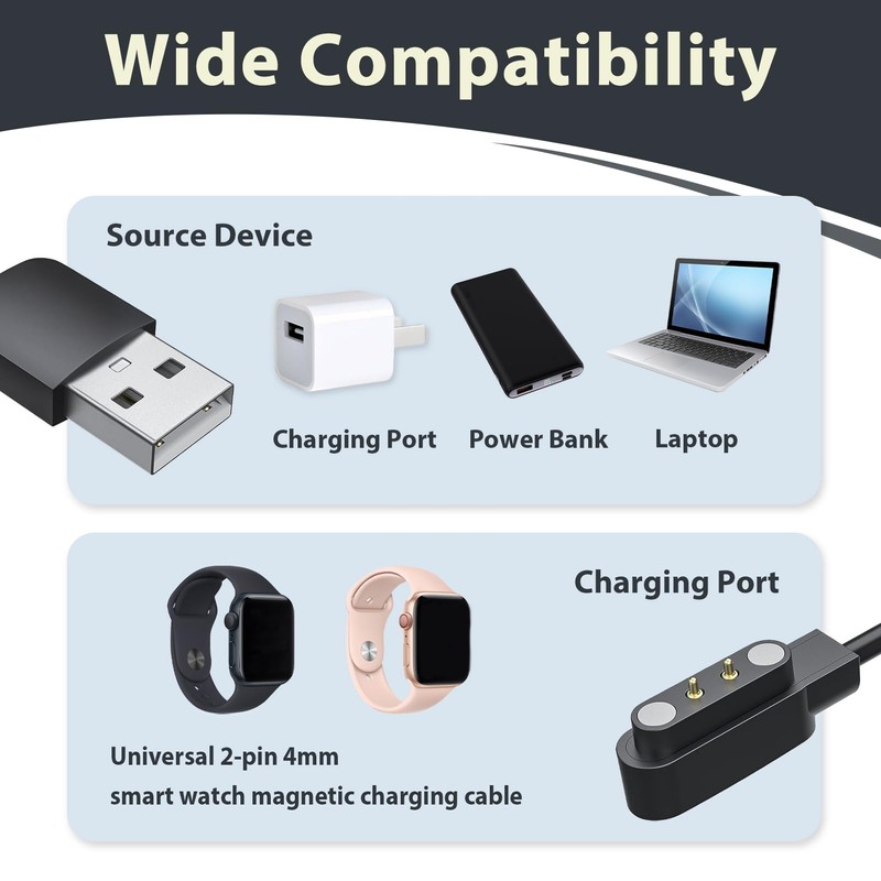 - 【Durable and Long-Lasting】Built to last, this smart watch charger 2 pin magnetic 4mm is tested to withstand over 12,000 bends. It provides reliable performance through regular use and resists wear and tear, ensuring longevity and efficient charging.