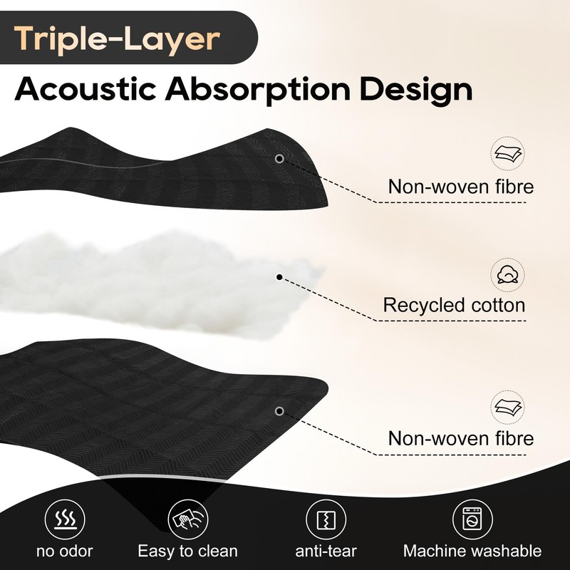 • 【Noise Reduction Protection】Our sound dampening blanket are made of thick non-woven fabrics and synthetic cotton,Effectively reducing indoor echoes and reverberations to capture clearer,cleaner sound.This sound dampening blanket also helps filter out street/car noise and the chatter of neighbors outside.