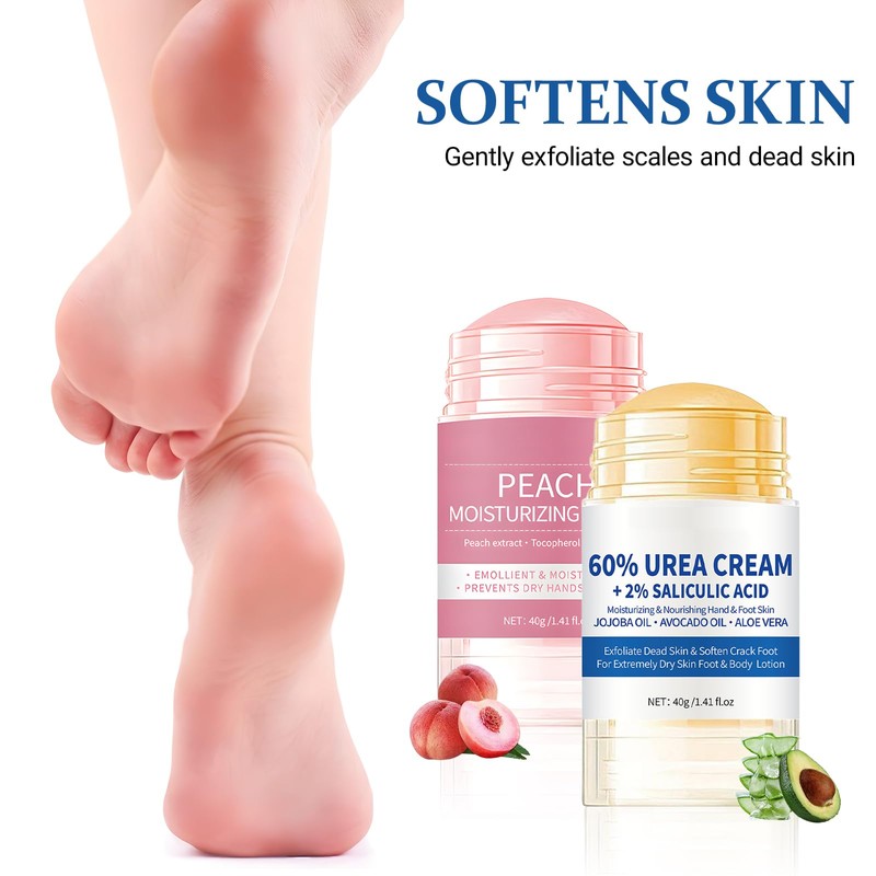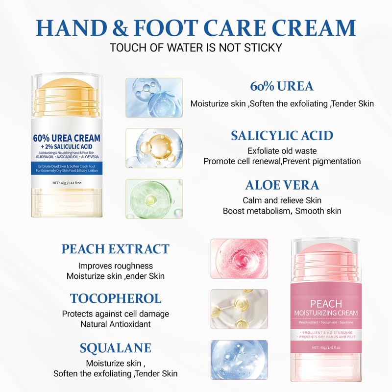 2 PCS Urea Foot Cream, Urea Cream 60 Percent for Feet, Moisturiser for Relieving Foot Dryness Soothing and Moisturizing, Light and Non-Sticky Texture with 1 Peach Hand and Foot Cream