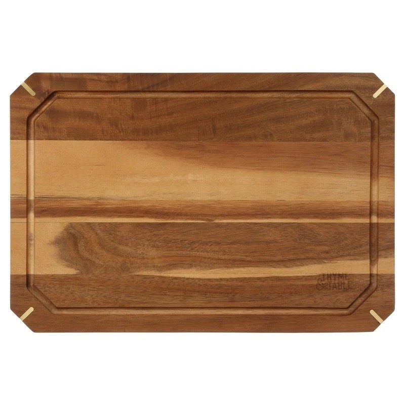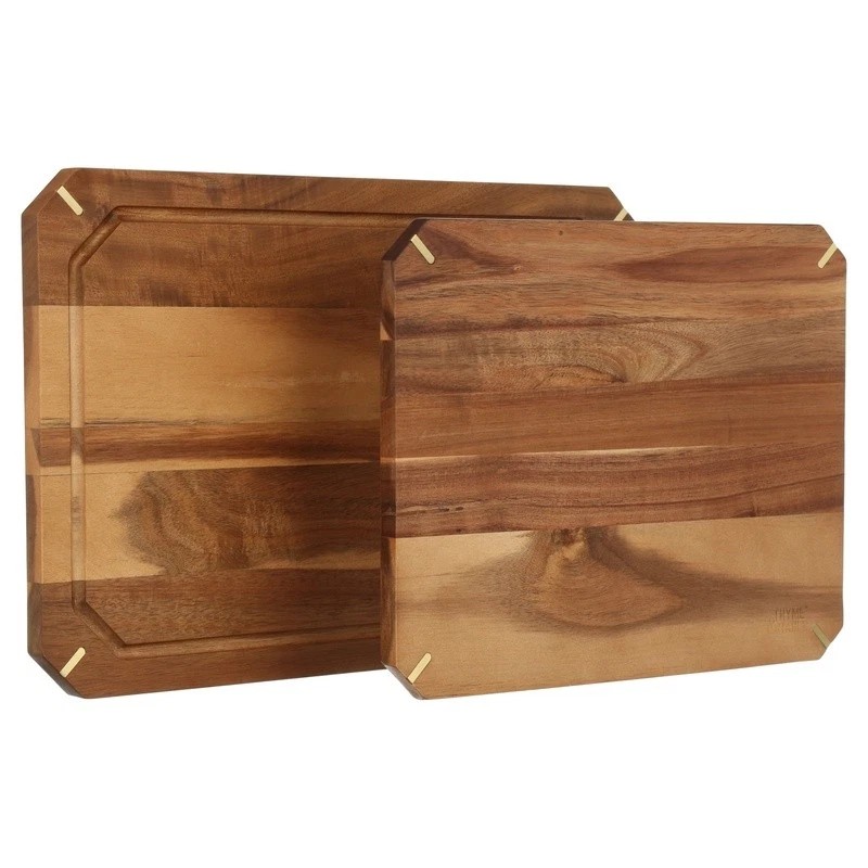2-Piece Acacia Cutting Board Set W/ Non-Slip Feet Juice Grooves Kitchen Use