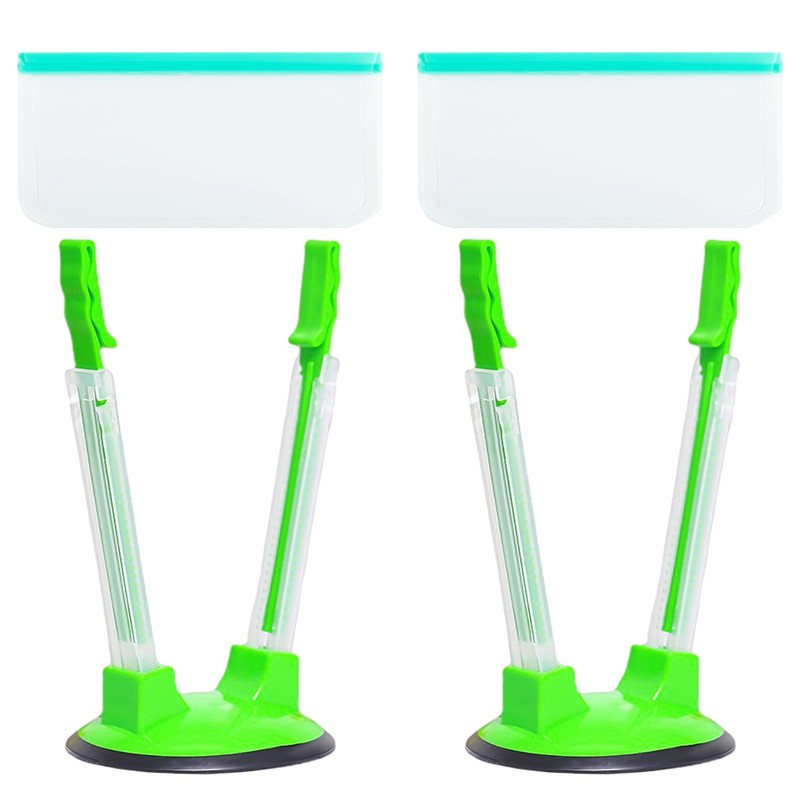 2-Piece Food Storage Bag Holder with 2-Piece Food Storage Bags, Sandwich Bag Holder, Food Bag Holder with Clip, Freezer Bag Holder (Green)