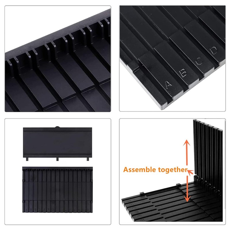 - 2、There are a total of 16 card slot positions, each labeled with a letter. The model parts can be arranged in your order for easy classification and organization.