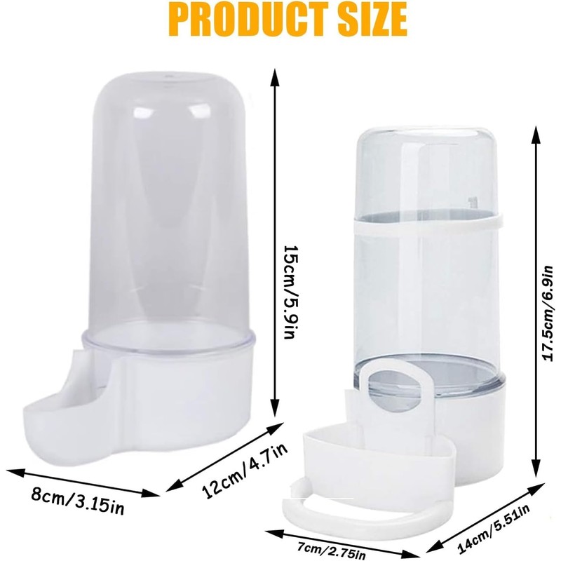 - 🐦【LARGE CAPACITY】The parrot water feeder has a capacity of 400ml, which can hold 4-5 days' worth of water or 3-4 days' worth of food to meet your birds' daily food needs. Transparent material allows you to observe the food ration. When you are on a short-term business trip, you no longer need to worry about your beloved pet running out of water.