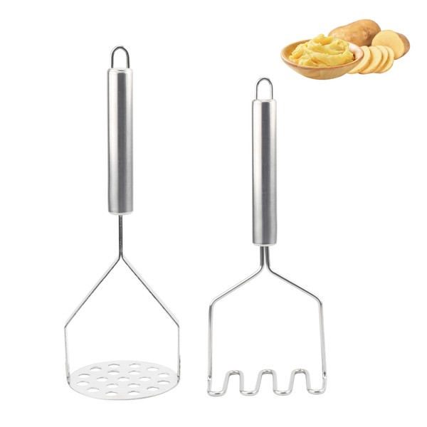 2 Pieces Potato Masher Stainless Steel Potato Masher Kitchen Utensils Stainless Steel Masher for Mashed Potatoes