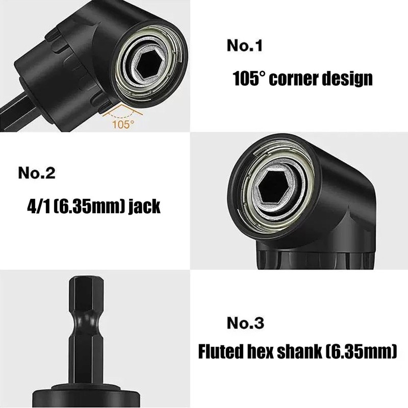 - Multi-purpose applications: these right-angle drill bits are suitable for a variety of electric drills and screwdrivers and are therefore an ideal tool for renovating homes, furniture assembly, workshop repair and many other applications. You can significantly increase work efficiency and comfort.
