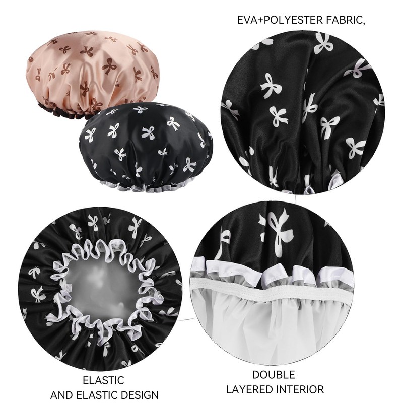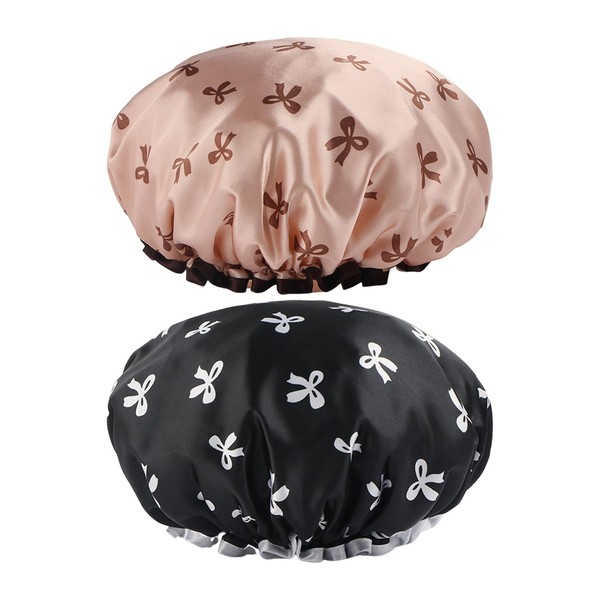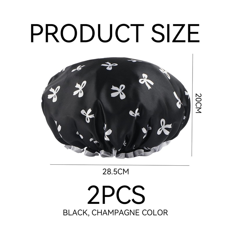 - 【Product Content】You Will Receive 2 Shower Caps, The Colors Are Black And Champagne, And The Size Is 28Cm, Suitable For Women'S Bathing And Kitchen Use.