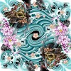 2 Player Blue Samurai Skull Roses Cloth Playmat Stitched