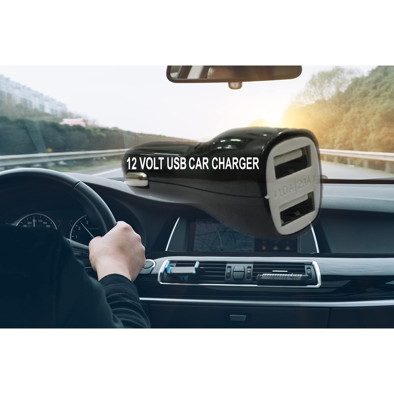 - Universal car charger with 2.1A maximum speed, works with all USB powered devices.
