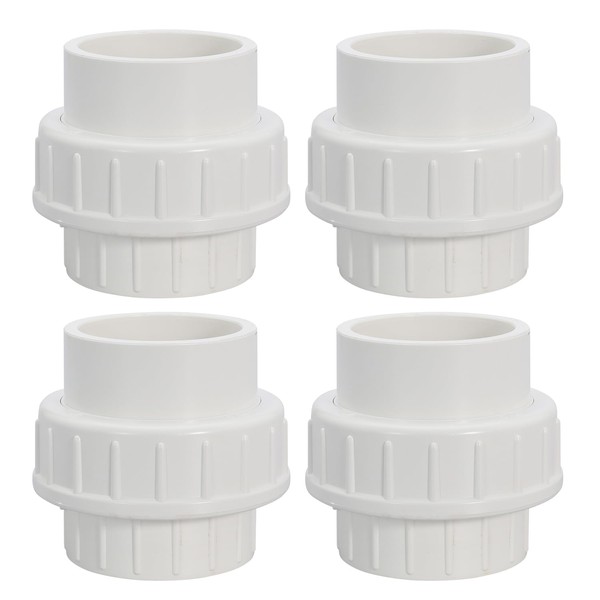 2" PVC Union Coupling Pipe Fitting PVC Adapter Schedule 40, EPDM O-Ring, 2 inch Slip Coupling Fitting (Socket x Socket), 4 Pack, White