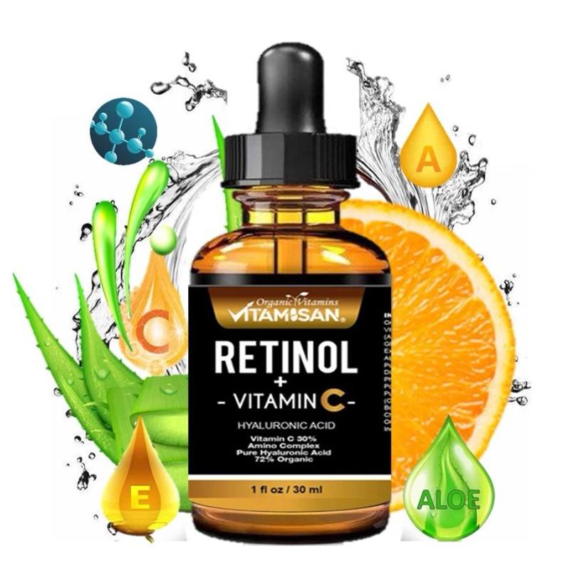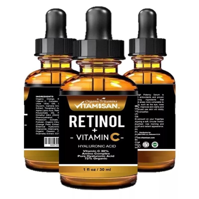 2 Retinol + Vitamina C y Ácido Hialurónico Antienvejecimiento Línea Fina Suero para Arrugas 30