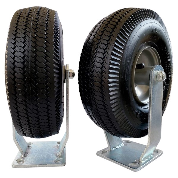 - 3.The 10" Rigid Pneumatic Caster Wheels are made of heavy duty rubber.Wheel features a premium steel caster yoke and pre-drilled plate mount, along with a precision ball bearing construction