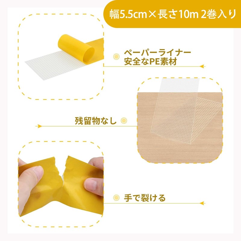 2 rolls ZOMPAGO double sided tape, strong and durable double sided mesh fiber tape, high adhesion, no residue, easy to tear, suitable for home, office, school, etc 10m length, 55mm width