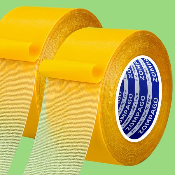 2 rolls ZOMPAGO double sided tape, strong and durable double sided mesh fiber tape, high adhesion, no residue, easy to tear, suitable for home, office, school, etc 10m length, 55mm width