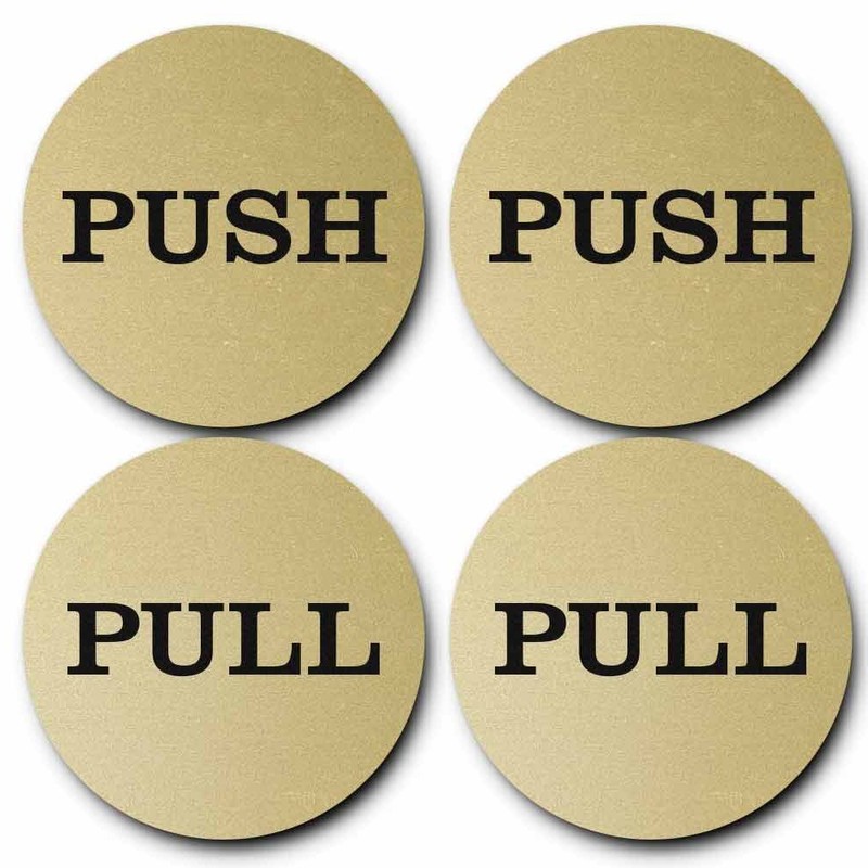 2" Round Push Pull Door Signs (Brushed Gold) - 2 Pack (4pcs)