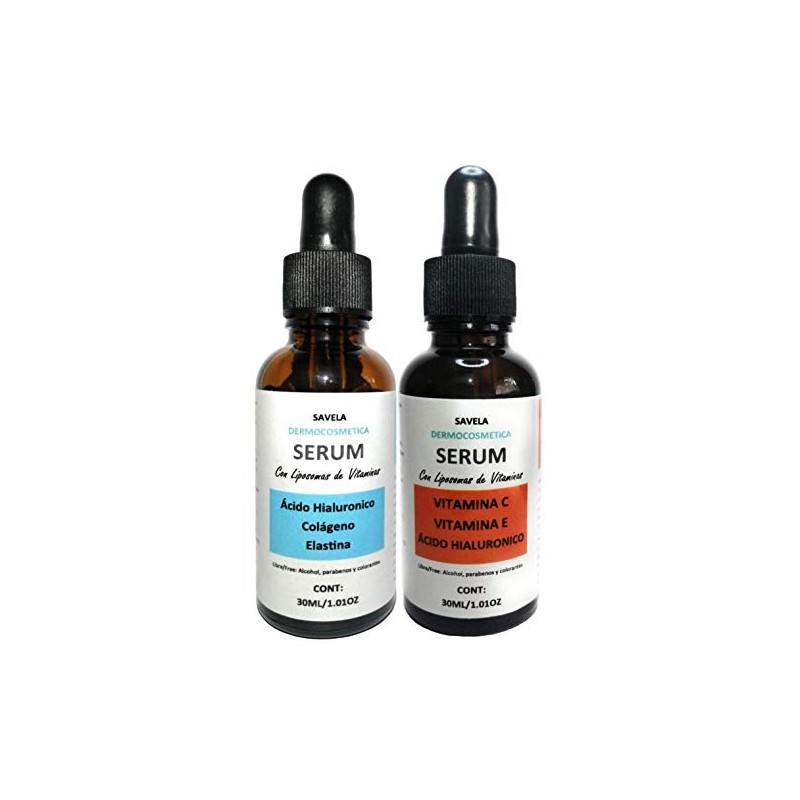 2 Serum Vitamina C, E, cido Hialuronico, Colgeno y Elastina 30 ml, Con Liposomas y extracto de Moringa, Ultra-Hidratante, antiedad, disminuye y evita