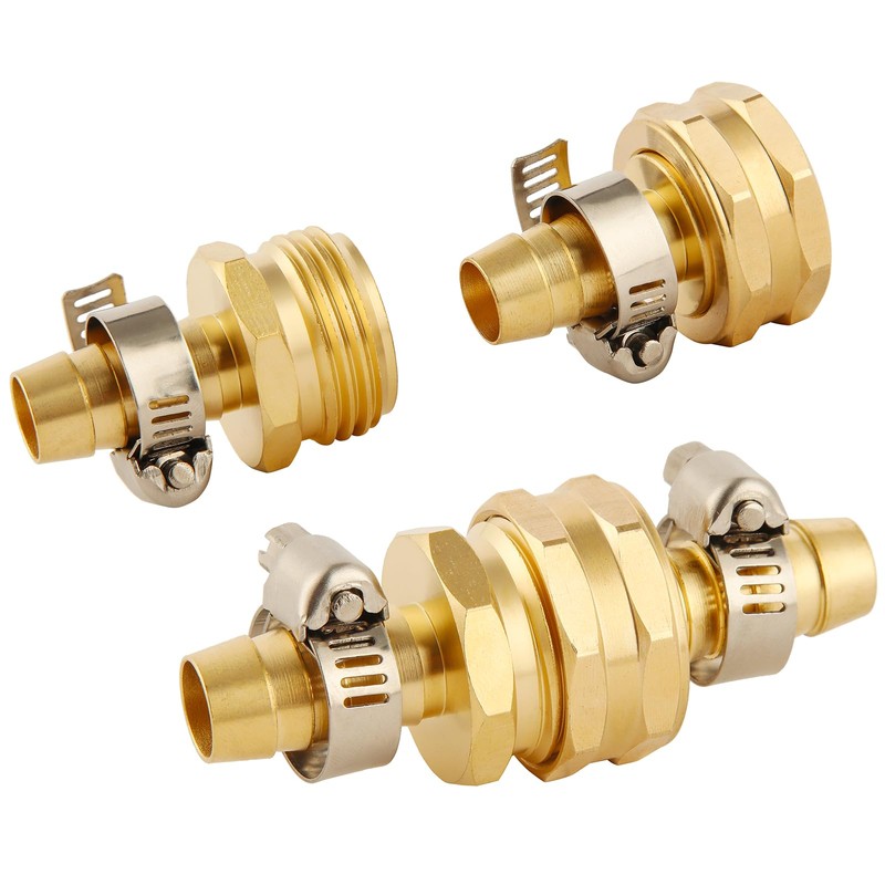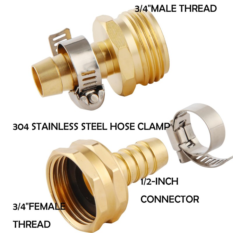 Brass Garden Hose Repair Connector Kit with stainless clampsthese male and female threaded hose ends, is also a connector for fixing leaks in the middle of a hose, you can have your hose fixed in just five minutes. Save you from the annoyance of a leaky hose!Notes:Please choose the correct hose size.Please keep the water pipe incision flat.Tighten the stainless steel clamps to prevent leakage and make sure the connector has rubber ring.If you have any problem, please contact us in time.