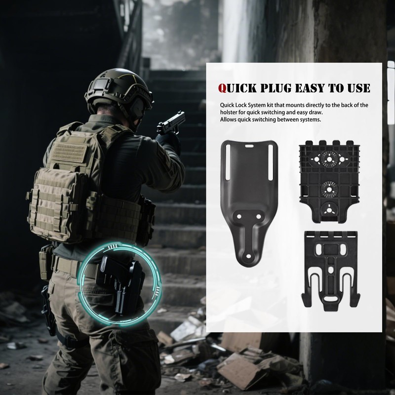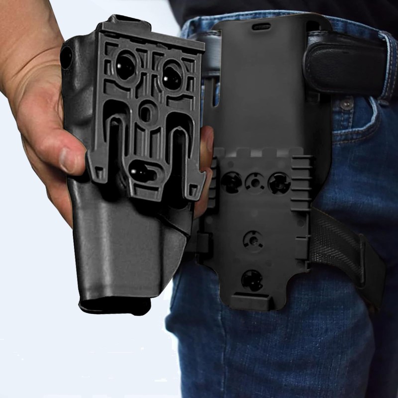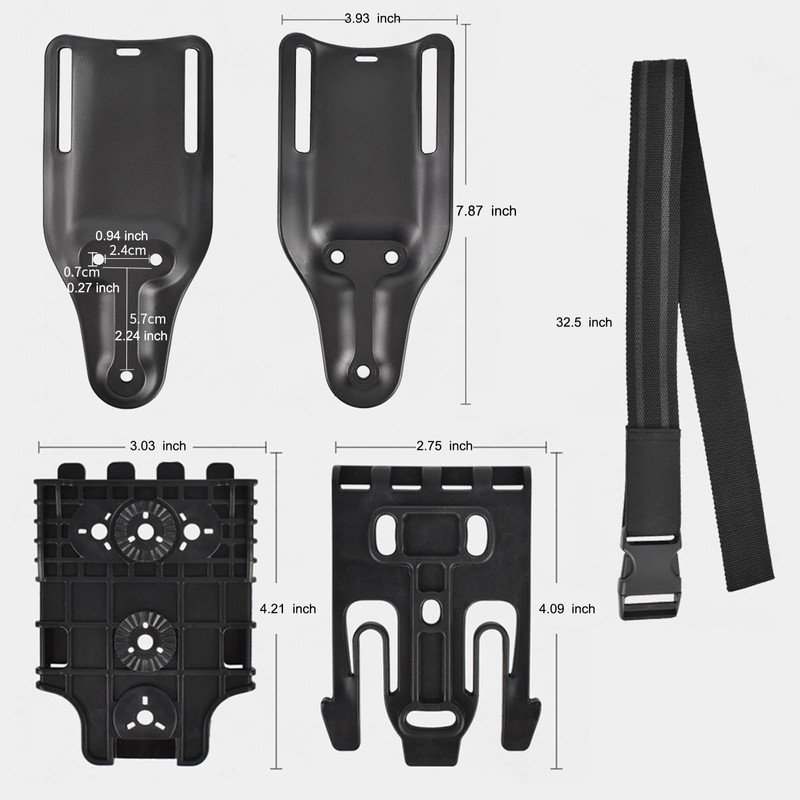- Easy to Install: Quickly transfer holsters and accessories from thigh carry position to other mounting positions. Assemble & Disassemble In 2 Secs, works with any 3-Hole Pattern Holster