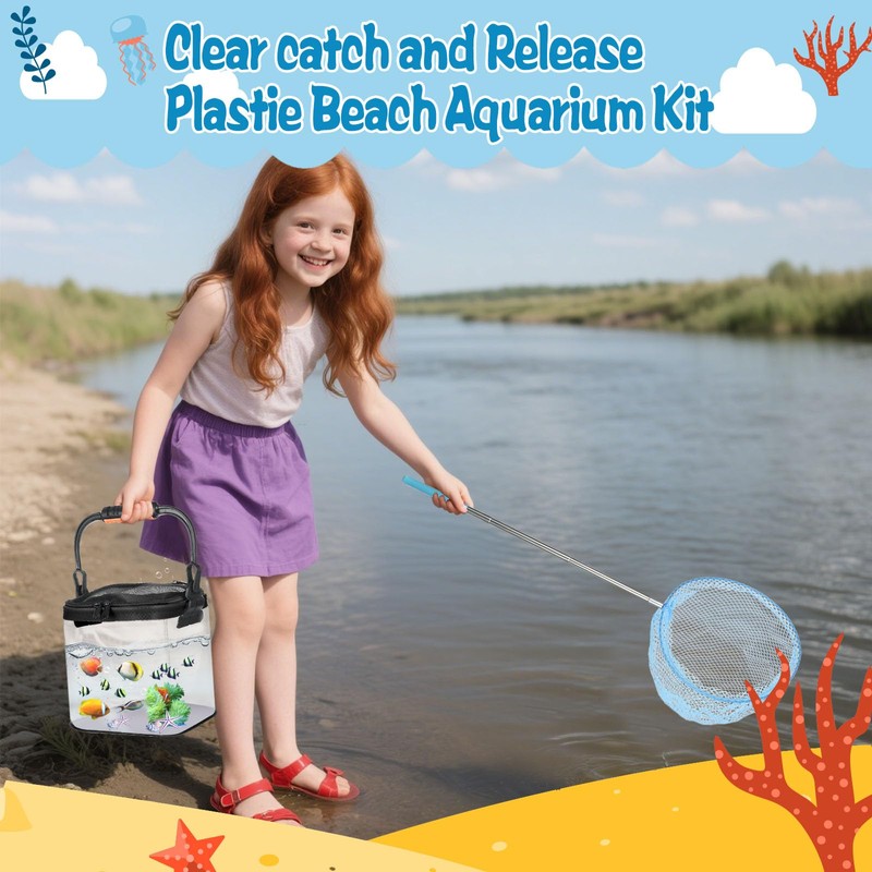 - 【Widely Applicable】Ideal gift for your own kids, outdoor animal watching enthusiasts and summer beach lovers, this catch and release plastic beach aquarium kit can be used not only to catch and release fish, but also as an observation container for snails, frogs, crabs and butterflies.