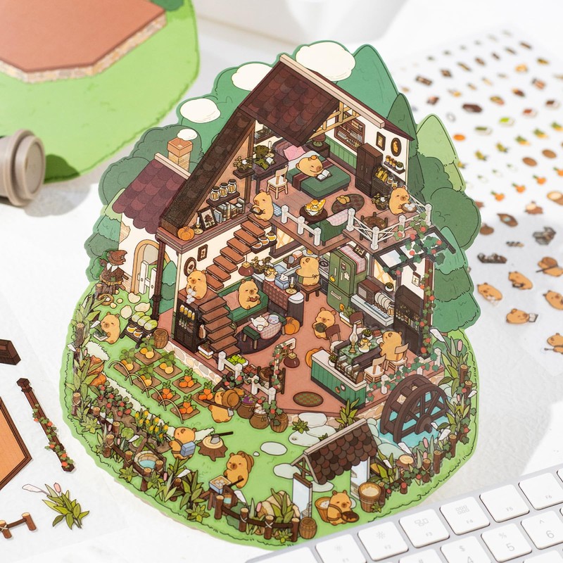 - DIY 3D House Stickers: You will receive 2 sets DIY 3D large size house scene stickers and a tweezer containing 2 different scenes including Capybara Farm Hut, Panda Teahouse, difficulty level up, very fun and creative.