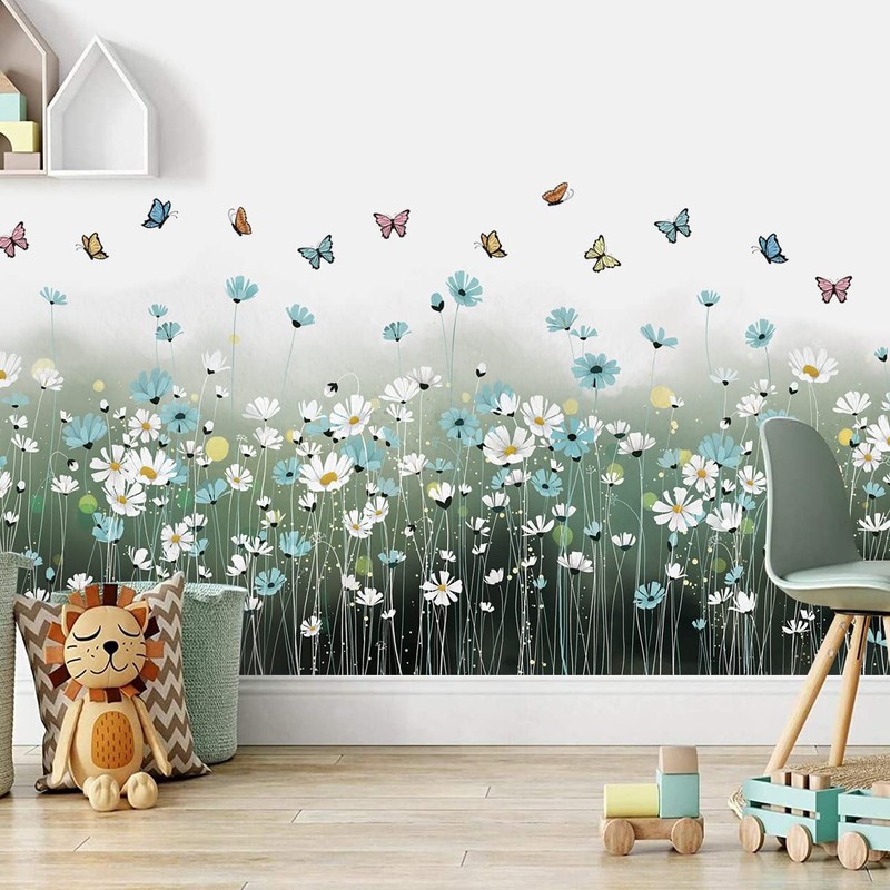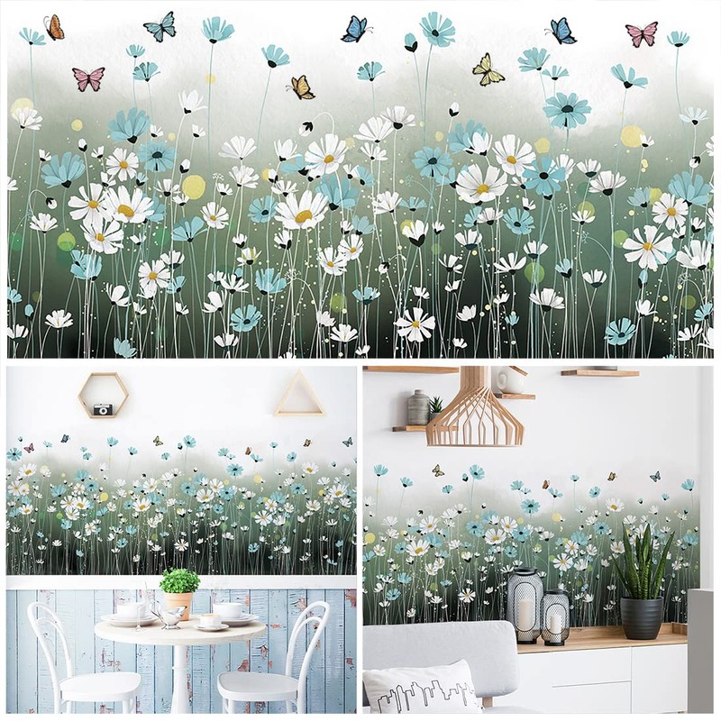 - 🌼Fresh Patterns: These blue daisy wall stickers are designed with lots of small daisy flowers and a pink gypsophila to set off,you can use them to decorate your room, making it full of nature fresh atmosphere, becoming a charming and vitality space, as if you are walking in the realistic plants flower garden.