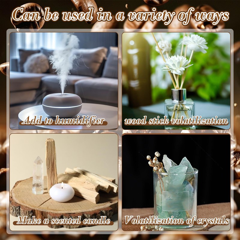 - Ätherisches Kaffeeöl:Ätherisches Kaffeeöl wird durch mehrere Verfahren sorgfältig extrahiert und verströmt ein reiches Kaffeearoma. Es entspannt Körper und Geist, baut Stress ab, erhebt den Geist und schafft eine angenehme und friedliche Atmosphäre für den Anwender