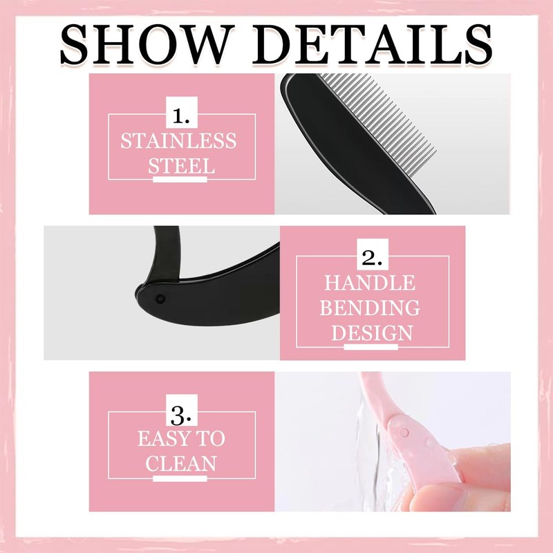 - Edelstahl-Metallkamm: Der Edelstahlkamm des Klappkamms ist sicher und einfach zu verwenden. Nach dem Auftragen der Wimperntusche trennt der gebogene Kamm die Wimpern, entfernt Verklumpungen und macht die Wimpern voller und dicker. Das gut gestaltete und komfortable Design liegt gut in der Hand