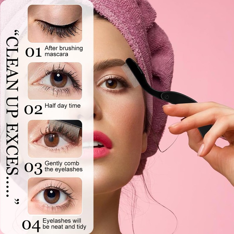 Edelstahl-Metallkamm: Der Edelstahlkamm des Klappkamms ist sicher und einfach zu verwenden. Nach dem Auftragen der Wimperntusche trennt der gebogene Kamm die Wimpern, entfernt Verklumpungen und macht die Wimpern voller und dicker. Das gut gestaltete und komfortable Design liegt gut in der Hand