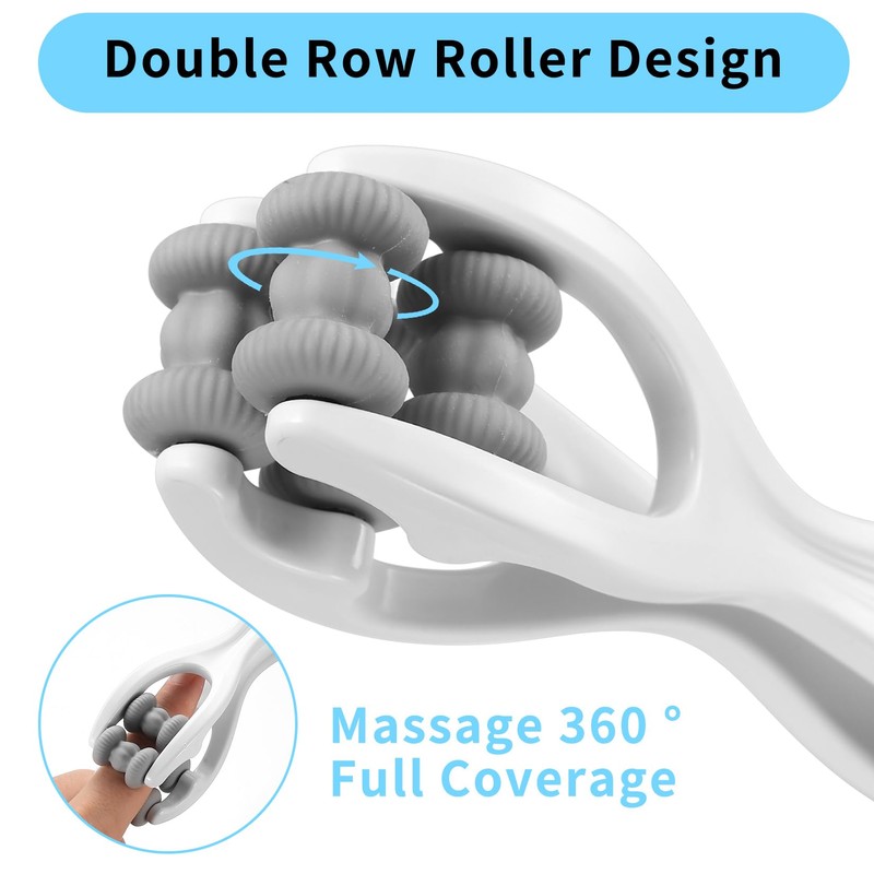 - Doppelseitiges Rollen, 360-Grad-Massage: massagerolle verwendet ein doppelseitiges unregelmäßiges konvexes Punktrollendesign, bei dem der Winkel frei eingestellt werden kann, um ein 360°-Pressen von Fingern, Händen und Armen ohne Totwinkel zu erreichen.